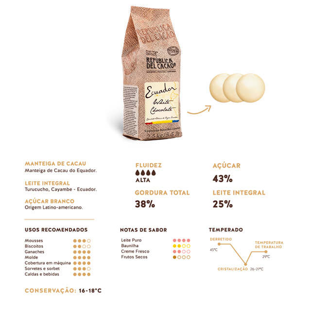 Apresentamos o primeiro chocolate branco de origem equatoriana, feito inteiramente com produtos equatorianos locais.