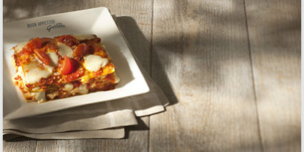 Corte os tomates cereja ao meio e saltei-os com um dente de alho. Em seguida, adicione todos os ingredientes do recheio (exceto o queijo Parmigiano Reggiano) e misture. Unte uma assadeira com azeite e forre o fundo com uma colher de recheio coloque uma folha de lasanha, em seguida o recheio e assim por diante. A última camada deve ser de recheio e por cima coloque o queijo Parmigiano Reggiano em abundância para o gratinado. Coloque a panela em um forno quente e asse a 180 ° C – 15 min.